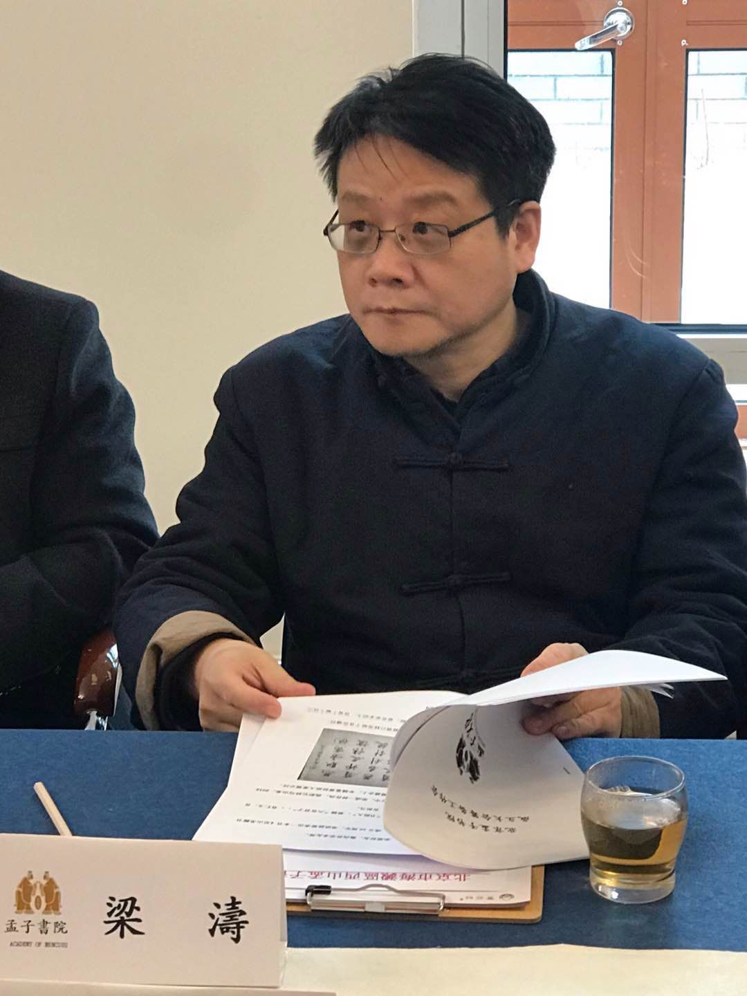 (图)中国人民大学国学院副院长、教授、博士生导师,北京孟子书院学术委员会主任梁涛发言。