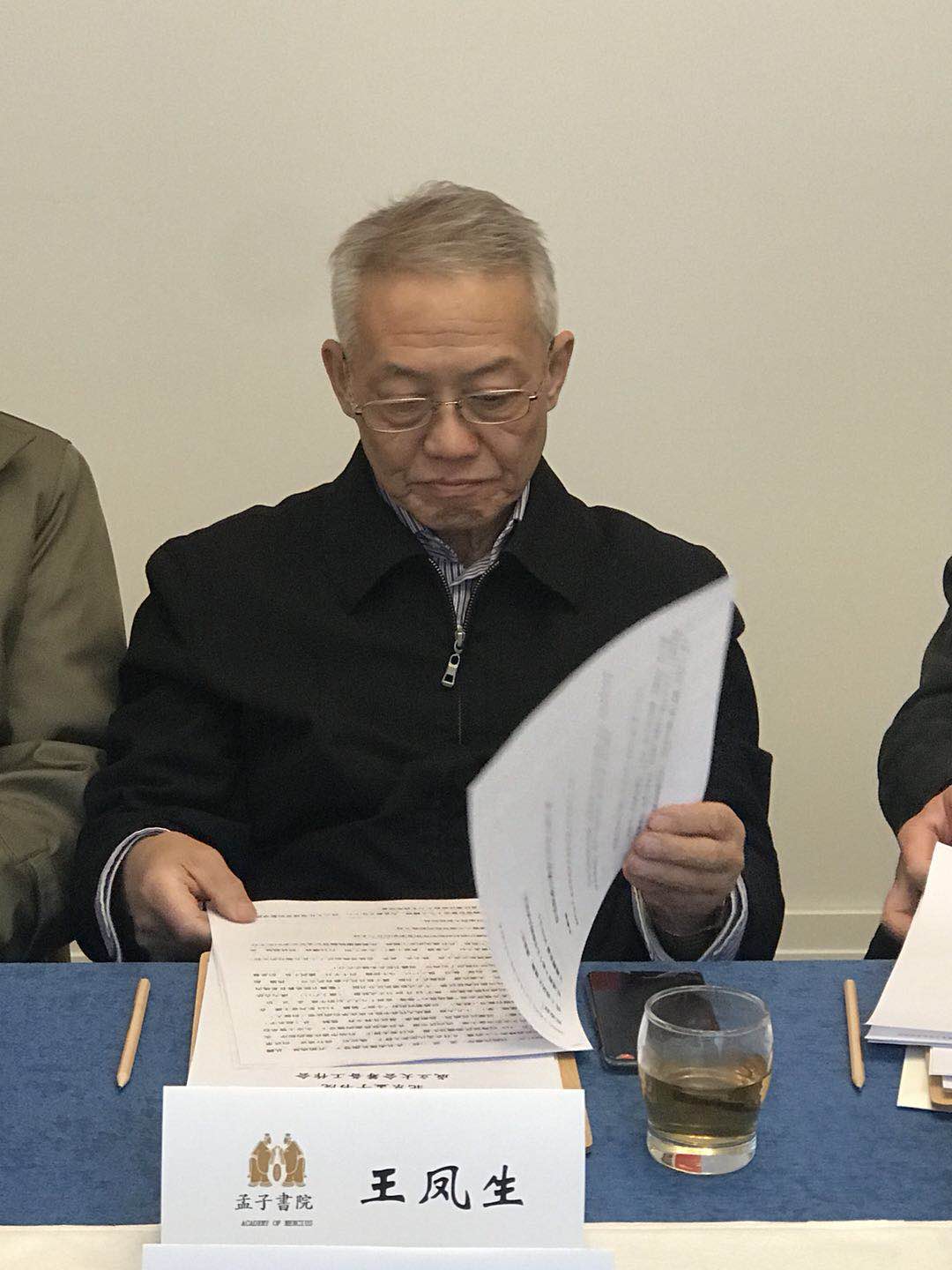 (图)清华大学原党委副书记,北京电影学院原党委书记、院长,北京孟子书院顾问王凤生发言。