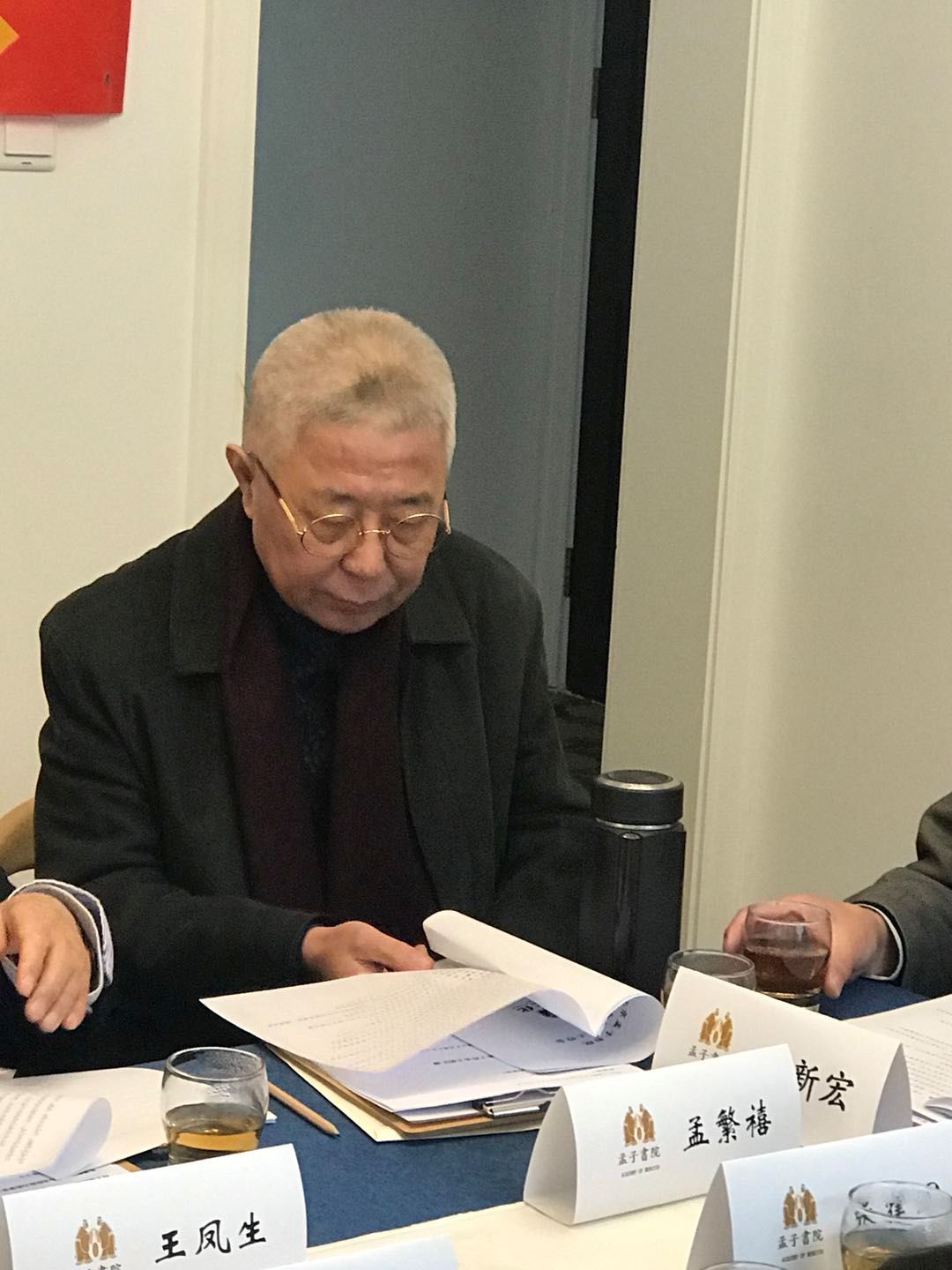 (图)北京青年政治学院教授、北京市海淀区西山孟子书院王新宏副院长主持会议