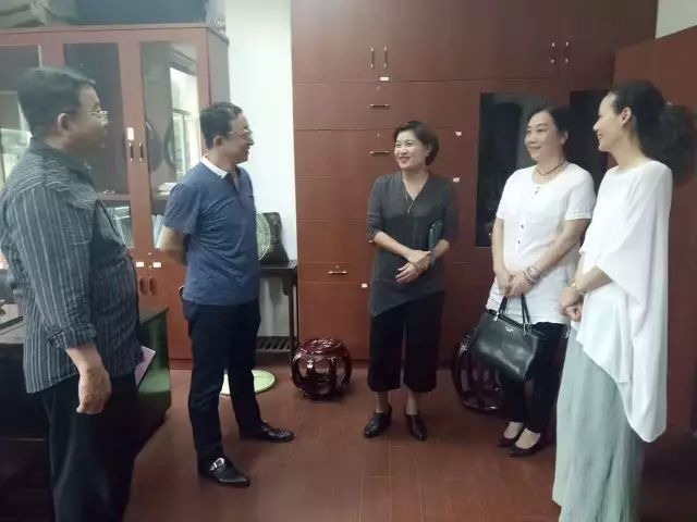 厦门市思明区委常委宣传部部长黄碧珊女士(中)、厦门市思明区文化馆馆长王磊先生(左2)及三位评委老师亲切交流