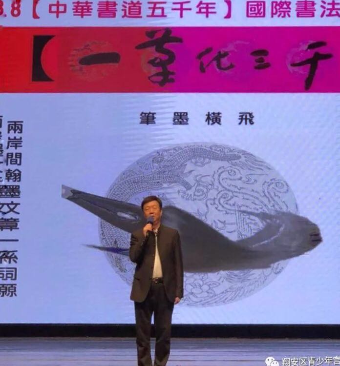 2018年3月17日下午,在海峡对岸金门县文化局演出大厅,一场“一笔化千年”书法文艺演出正隆重上演,本场演出是庆祝金门县书法家协会换届成功暨书法作品展的系列活动之一,来自中国大陆和世界各地华裔书法家聚集金门,金门县县长、文化局长和教育主管都出席了这场书法文艺演出。