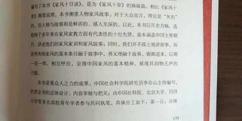 由是,继《家风十章》之后,我们又编选了这本《家风十日谈:中国古人的治家良训和故事》。前一本书主要是从理论上阐述家文化在中国传统文化中的特殊重要地位、家文化与家风的关系、传统家风的核心精神及其现代价值等等。虽然在这种理论阐述中也要结合一些人和事,但它毕竟受到学理论说的局限,还不足以充分显示家风在中国历史的社会生活和圣贤豪杰崇高人格生命中的“活”的特点。为了补此不足,我们选出周公、孔子、孟子、诸葛亮、李世民、范仲淹、苏轼、朱熹、曾国藩、梁启超等十位代表人物,以“家风十日谈”的形式,用具体的人和事来彰显家风对于这些圣贤豪杰的人格塑造和人生业绩所起的重要作用 。