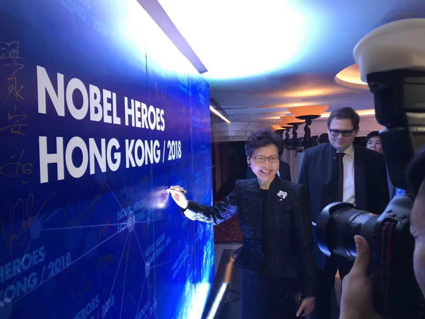 (香港特首林郑月娥女士与诺贝尔奖得主们)