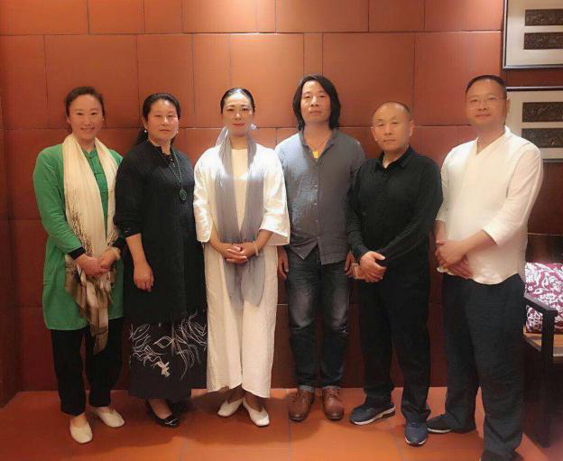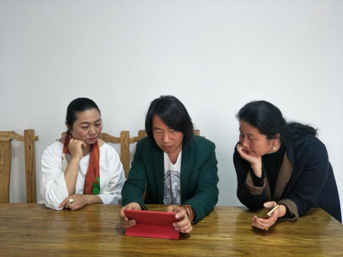 图为2018年初在厦门孟刚工作室团队与孟小红理事长一起交流