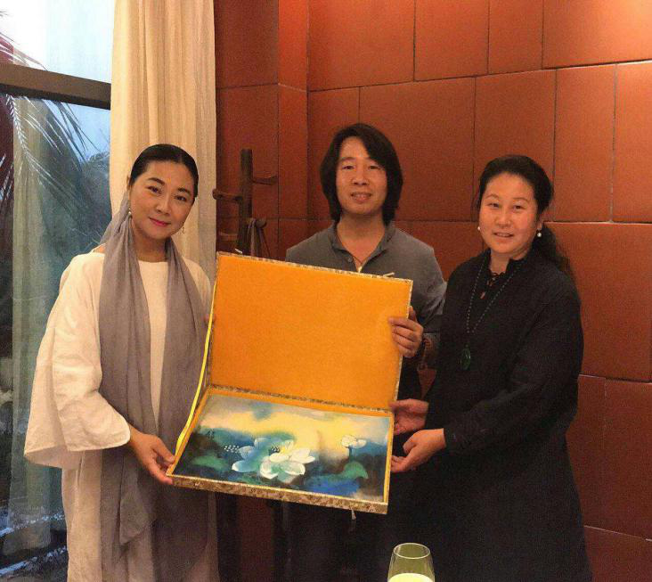 图为2018年5月16日,孟刚老师向孟小红理事长捐赠《中华贤母――孟母像》的原创作品,北京孟子书院收藏。