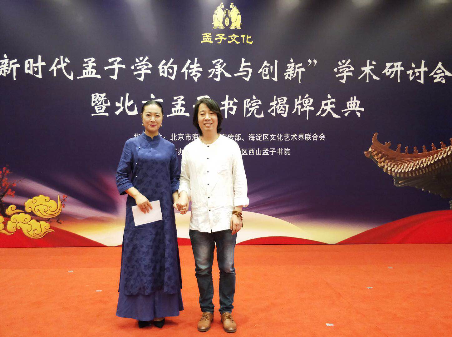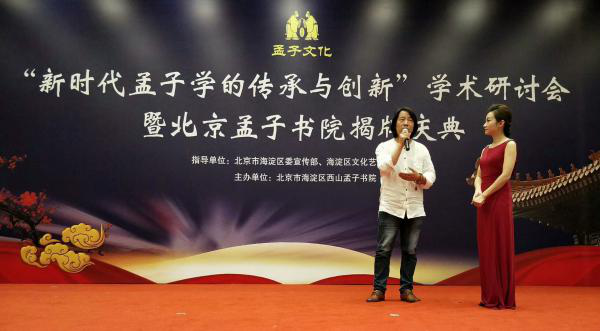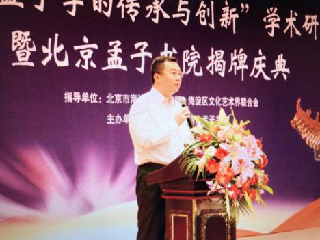 图为《“新时代孟子学的传承与创新”学术研讨会暨北京孟子书院揭牌庆典》活动现场,孟母画像捐赠仪式在当天上午举行,社会各界人士共同见证捐赠仪式。