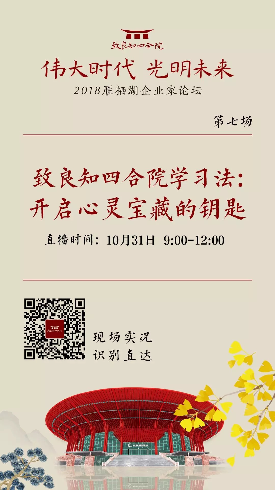 这届论坛的核心主题为“伟大时代光明未来”,延续了2017雁栖湖企业家论坛“文化自信民族复兴”的核心议题,并将其进一步阐述为“文化自信的伟大时代;民族复兴的光明未来”。共同学习,探讨传统文化复兴的大潮中如何构建商业文明的未来蓝图!