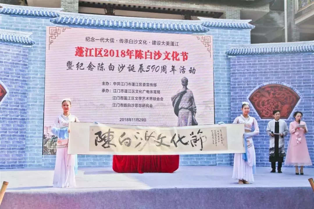 11月29日上午,蓬江区2018年陈白沙文化节暨纪念陈白沙诞辰590周年活动开幕式在茅龙书苑隆重举行。本届文化节以“纪念一代大儒·传承白沙文化·建设大美蓬江”为主题,旨在通过这一节庆活动,促进蓬江区扩大对外开放交流,加快名人文化资源的开发与利用,打造“陈白沙文化”品牌,汇聚人气、提升名气,促进经济社会全面发展,当好江门加快发展主力军。